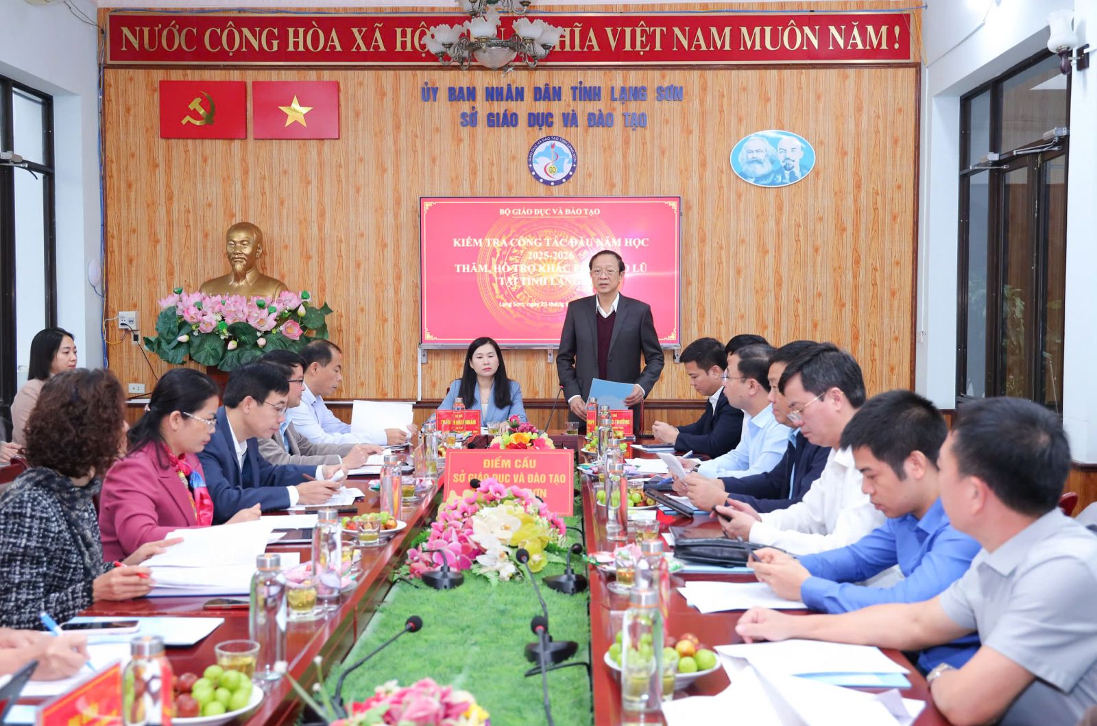 Báo cáo tại buổi làm việc, Giám đốc Sở GDĐT Lạng Sơn Hoàng Quốc Tuấn cho biết: Để bước vào năm học mới, Sở GDĐT tỉnh Lạng Sơn đã chỉ đạo các cơ sở giáo dục rà soát, chuẩn bị cơ sở vật chất, trang thiết bị dạy học bảo đảm điều kiện triển khai chương trình năm học mới theo yêu cầu của Chương trình giáo dục phổ thông 2018. Cân đối nguồn lực địa phương và các nguồn kinh phí hợp pháp khác để đầu tư, ưu tiên cho các trường vùng biên giới, khó khăn, vùng dân tộc thiểu số.