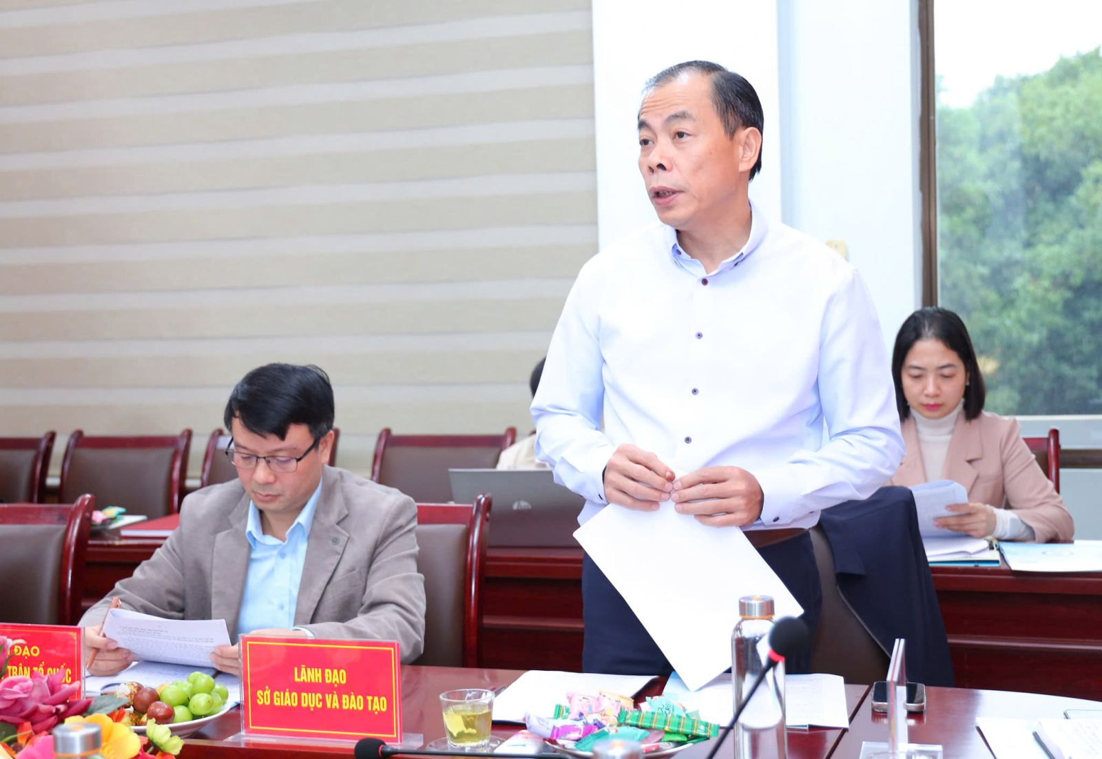 Giám đốc Sở GDĐT Lạng Sơn Hoàng Quốc Tuấn báo cáo tại buổi làm việc