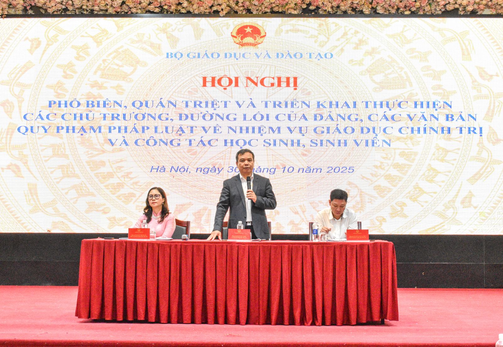 Sáng 30/10/2025, Bộ Giáo dục và Đào tạo (GDĐT) tổ chức Hội nghị phổ biến, quán triệt và triển khai các chủ trương, đường lối của Đảng, các văn bản quy phạm pháp luật về nhiệm vụ giáo dục chính trị và công tác học sinh, sinh viên