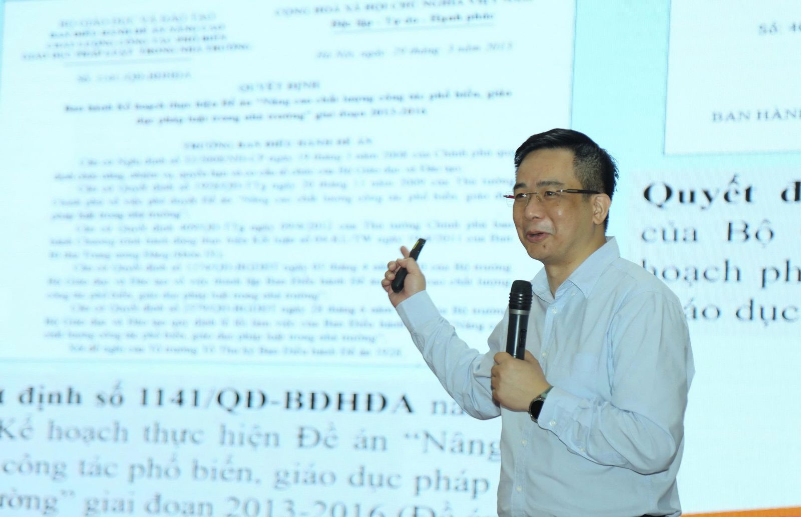 Trình bày chuyên đề “Tăng cường các giải pháp phổ biến, tuyên truyền, giáo dục pháp luật cho học sinh, sinh viên”, ông Nguyễn Như Hà, Phó Vụ trưởng Vụ Pháp chế, Bộ GDĐT nhấn mạnh: công tác giáo dục pháp luật trong nhà trường cần được tái cấu trúc mạnh mẽ theo hướng phát triển năng lực thực tiễn, giúp người học hiểu, vận dụng và tuân thủ pháp luật trong đời sống hằng ngày, chứ không chỉ dừng ở lý thuyết trong sách vở.