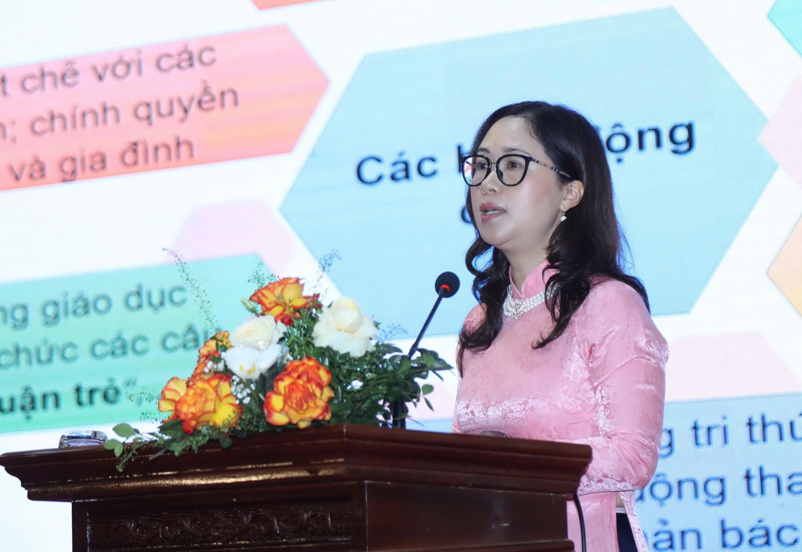 Bà Nguyễn Thị Nhung, Phó Vụ trưởng Vụ Học sinh, sinh viên, báo cáo tại hội nghị