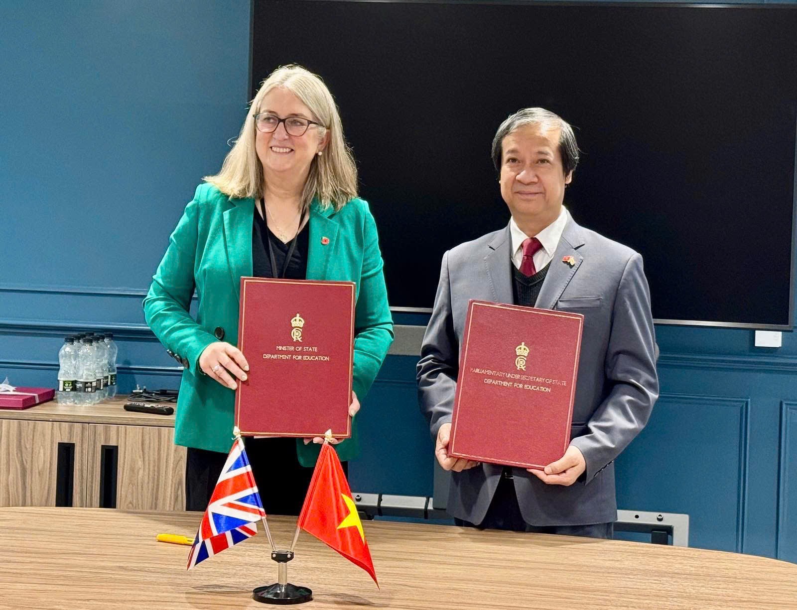 Tại buổi làm việc, hai bên đã cùng ký Ý định thư hợp tác, đồng thời Nữ Nam tước Jacqueline Smith trân trọng mời Bộ trưởng Nguyễn Kim Sơn tham dự Diễn đàn Giáo dục Thế giới tổ chức tại Anh vào tháng 5/2026.