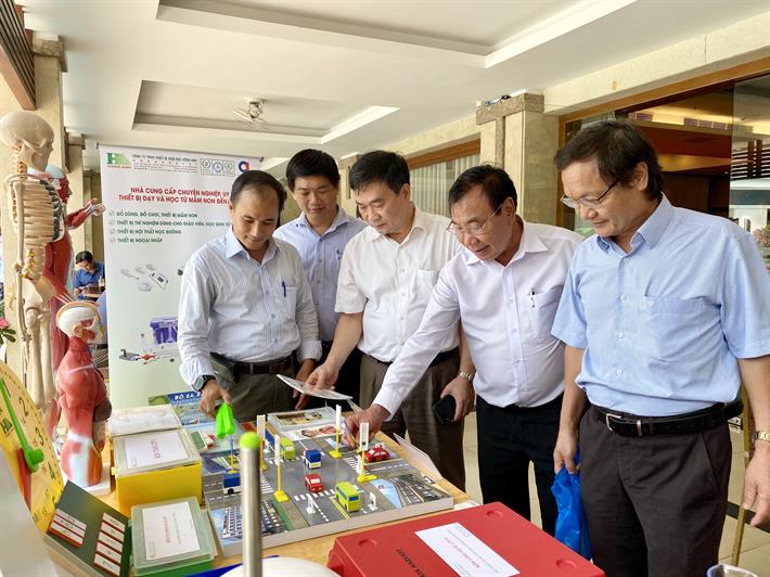 Các đại biểu tham quan thiết bị giáo dục tại gian triển lãm