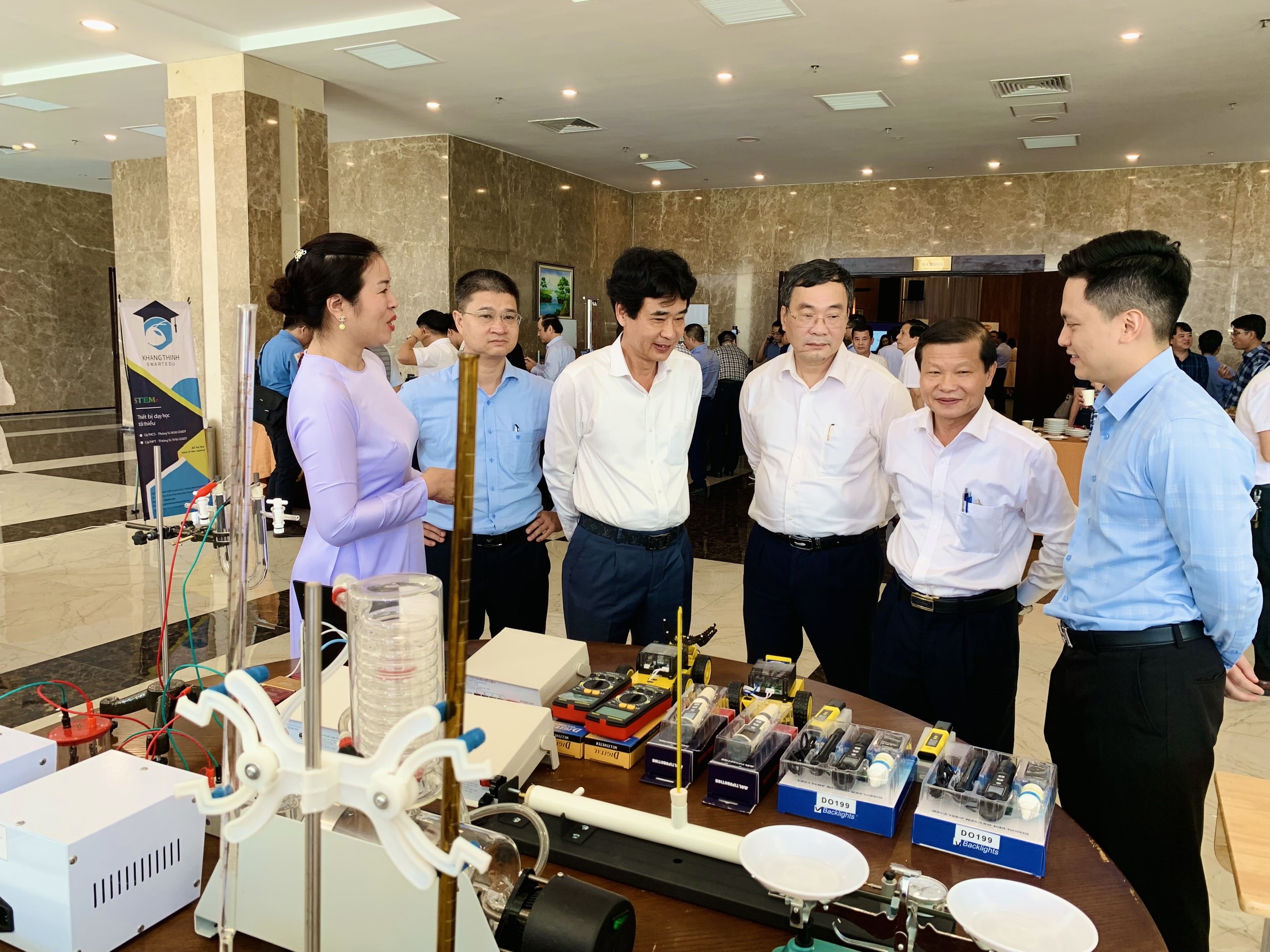 Các đại biểu tại hội thảo tham quan khu vực trưng bày thiết bị dạy học các cấp