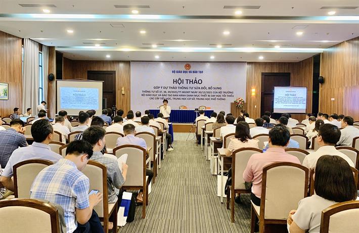 Báo cáo tại hội thảo, Vụ trưởng Vụ Cơ sở vật chất (Bộ GDĐT) Phạm Hùng Anh thông tin: Nhằm đảm bảo việc thực hiện Chương trình GDPT 2018, Bộ GDĐT đã xây dựng danh mục thiết bị dạy học tối thiểu.