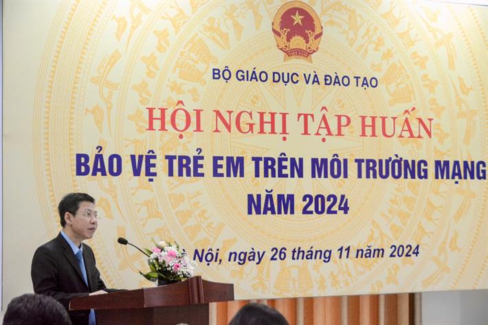 Phát biểu khai mạc hội nghị, ông Nguyễn Xuân An Việt - Phó Vụ trưởng Vụ Giáo dục Chính trị và Công tác học sinh, sinh viên, Bộ GDĐT nhấn mạnh: "Trong thời đại công nghệ 4.0, môi trường mạng đã trở thành một phần không thể thiếu trong cuộc sống, đặc biệt với các em học sinh. Tuy nhiên, bên cạnh những lợi ích to lớn mà công nghệ mang lại, môi trường mạng cũng tiềm ẩn nhiều nguy cơ như tiếp cận thông tin độc hại, lạm dụng dữ liệu cá nhân, hay các hành vi xâm phạm quyền trẻ em như bắt nạt, lừa đảo, và nguy cơ nghiện mạng".