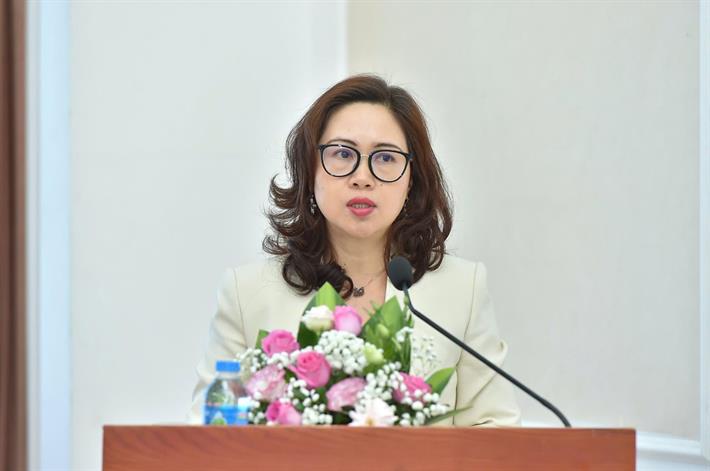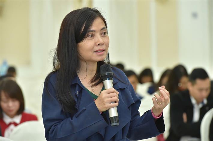 Phó Vụ trưởng Vụ Giáo dục Chính trị và Công tác học sinh, sinh viên Nguyễn Thị Nhung phát biểu tại hội nghị