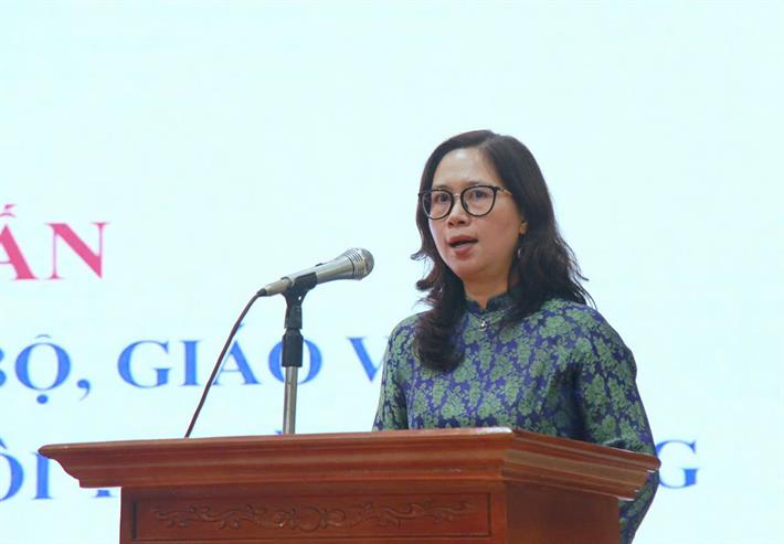 Phó Vụ trưởng Vụ Học sinh, sinh viên (Bộ GDĐT) Nguyễn Thị Nhung phát biểu tại hội nghị