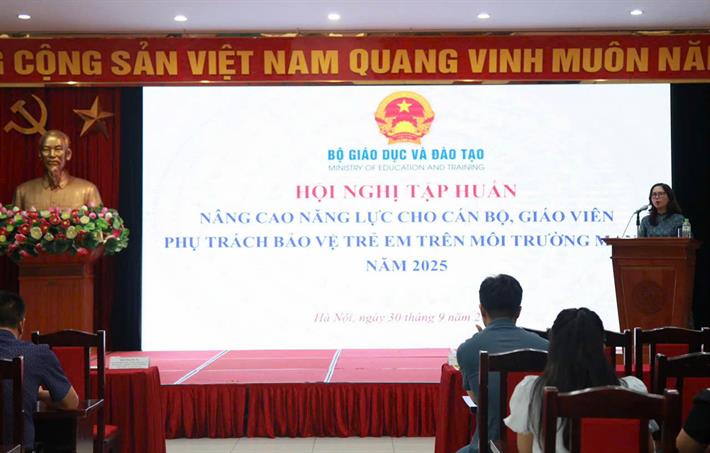 Ngày 30/9, tại Hà Nội, Bộ Giáo dục và Đào tạo (GDĐT) tổ chức hội nghị tập huấn nâng cao năng lực cho đội ngũ cán bộ, giáo viên phụ trách công tác bảo vệ trẻ em trên môi trường mạng. Hội nghị được tổ chức theo hình thức trực tiếp kết hợp trực tuyến tới 750 điểm cầu các cơ sở giáo dục trong cả nước với sự tham dự của hơn 15 nghìn cán bộ, giáo viên.