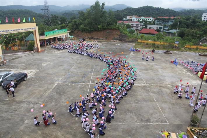 Học sinh Điện Biên xếp hình bản đồ Việt Nam đón năm học mới