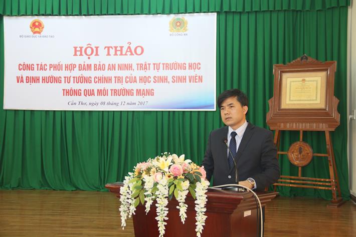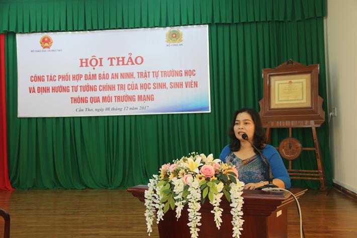 Chủ trì tại Hội thảo tại khu vực miền Nam có ông Bùi Văn Linh - Phó Vụ trưởng phụ trách Vụ Giáo dục Chính trị và Công tác HS, SV (Bộ GD&ĐT); phía Bộ Công an có Đại tá Văn Công Minh - Phó Cục trưởng Cục An ninh chính trị nội bộ (A83); bà Trần Hồng Thắm - Giám đốc Sở GD&ĐT TP Cần Thơ; cùng đại diện lãnh đạo PA83, Phòng Chính trị tư tưởng các Sở GD&ĐT; các trường ĐH, học viện; các đồng chí Bí thư Đoàn TN trong các cơ sở đào tạo khu vực phía Nam.Hội thảo đã tập trung đánh giá kết quả 2 năm triển khai thực hiện Thông tư liên tịch số 06/2015/TTLT-BCA-BGDĐT ngày 28/8/2015 của Bộ Công an và Bộ Giáo dục và Đào tạo về hướng dẫn phối hợp thực hiện nhiệm vụ bảo vệ an ninh quốc gia, giữ gìn trật tự an toàn xã hội và đấu tranh phòng chống tội phạm, vi phạm pháp luật khác trong ngành Giáo dục (TTLT số 06/2015/TTLT-BGDĐT-BCA ngày 28/8/2015); Kế hoạch phối hợp số 1082/KH-BGDĐT-TWĐTN ngày 27/11/2014 giữa Bộ GD&ĐT và Trung ương Đoàn TNCS Hồ Chí Minh về việc tổ chức các hoạt động giáo dục, hướng dẫn cách sử dụng, khai thác thông tin trên mạng Internet cho thanh, thiếu niên trong trường học; đại diện các Đại học, học viện, các sở GD&DDT, phòng PA83 của Công an các tỉnh, Bí thư Đoàn TN các cơ sở đào tạo đã phát biểu tham luận và tiến hành thảo luận sôi nổi về các kết quả đã đạt được, các tồn tại, hạn chế; kiến nghị các giải pháp để tăng cường hiệu quả công tác triển khai công tác đảm bảo an ninh, trật tự trường học và định hướng tư tưởng chính trị HS, SV thông qua môi trường mạng trong thời gian tới.