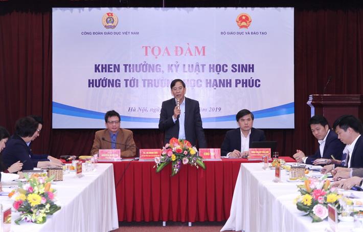 Sáng 04/12, tại Hà Nội, Bộ GD&ĐT phối hợp với Công đoàn Giáo dục Việt Nam tổ chức Tọa đàm Khen thưởng, kỷ luật học sinh hướng tới trường học hạnh phúc với sự tham gia của các chuyên gia giáo dục, các nhà khoa học, giáo viên đến từ các tỉnh miền bắc và miền trung.