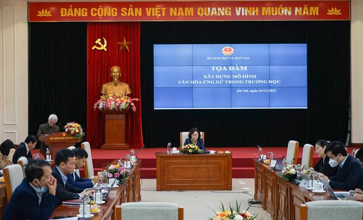 Ngày 2/12, Thứ trưởng Ngô Thị Minh chủ trì Tọa đàm “Xây dựng mô hình văn hóa ứng xử trong trường học”. Tọa đàm có sự tham dự của các học giả, nhà văn hóa, chuyên gia, nhà quản lý giáo dục và lãnh đạo các đơn vị của Bộ GDĐT.