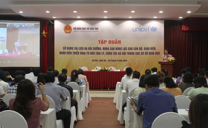 Trong 2 ngày (8-9/6), Bộ Giáo dục và Đào tạo (GDĐT) tổ chức hội nghị tập huấn sử dụng tài liệu và bồi dưỡng, nâng cao năng lực cho cán bộ, giáo viên, nhân viên triển khai tư vấn tâm lý, công tác xã hội trong các cơ sở giáo dục.