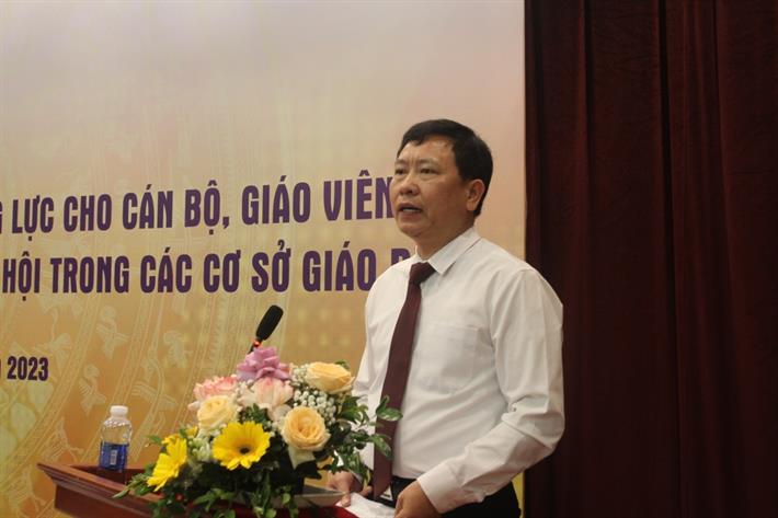 Quyền Vụ trưởng Vụ Giáo dục Chính trị và Công tác học sinh, sinh viên (Bộ GDĐT) Trần Văn Đạt phát biểu tại Tập huấn