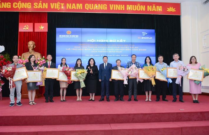Nhân dịp này, Bộ GDĐT đã tặng bằng khen cho 16 tập thể có hoạt động tích cực trong quá trình triển khai Đề án “Hỗ trợ học sinh, sinh viên khởi nghiệp đến năm 2025”.