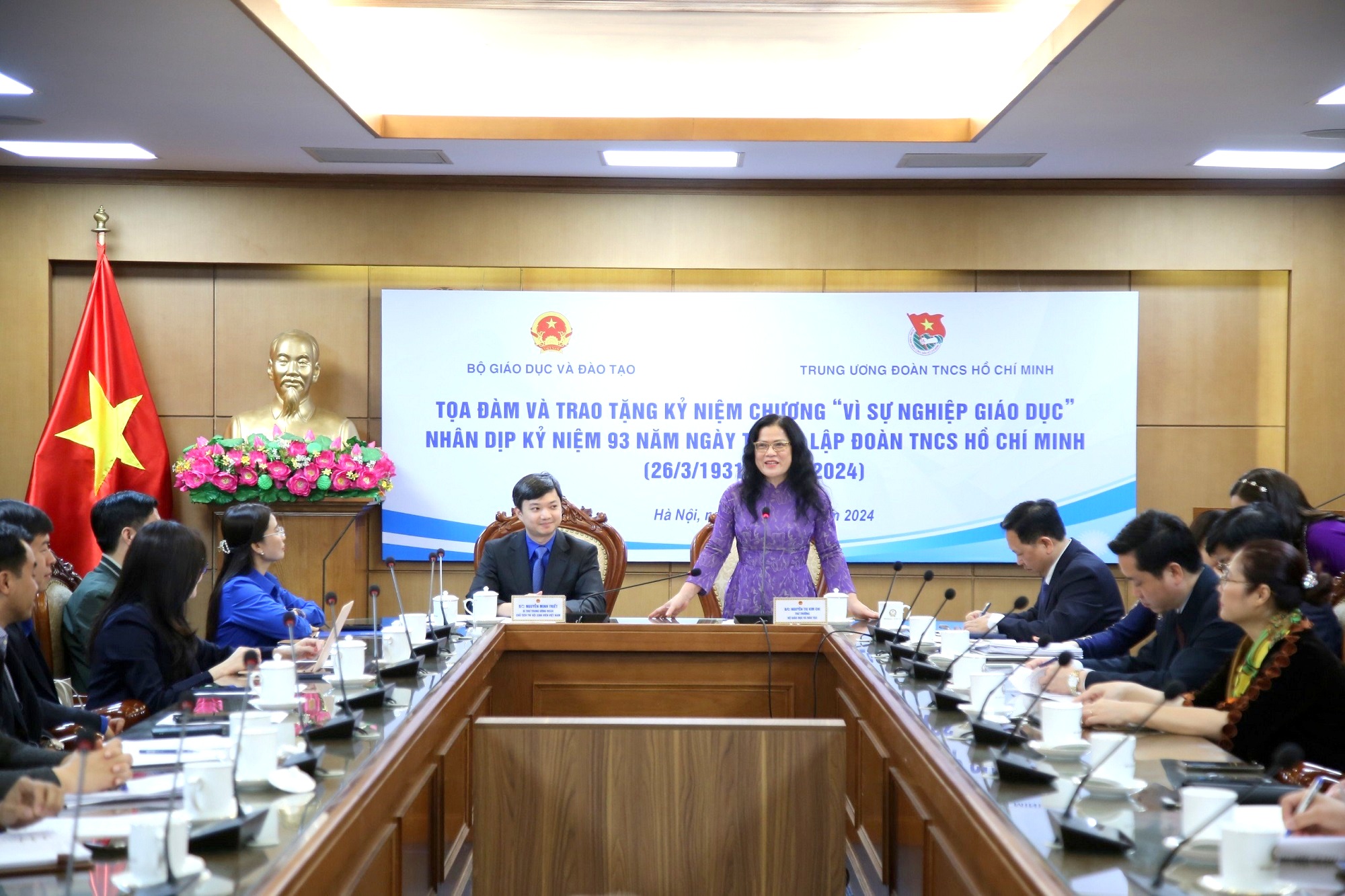 Thứ trưởng Nguyễn Thị Kim Chi trao tặng Kỷ niệm chương “Vì sự nghiệp giáo dục” cho các đồng chí cán bộ Trung ương Đoàn