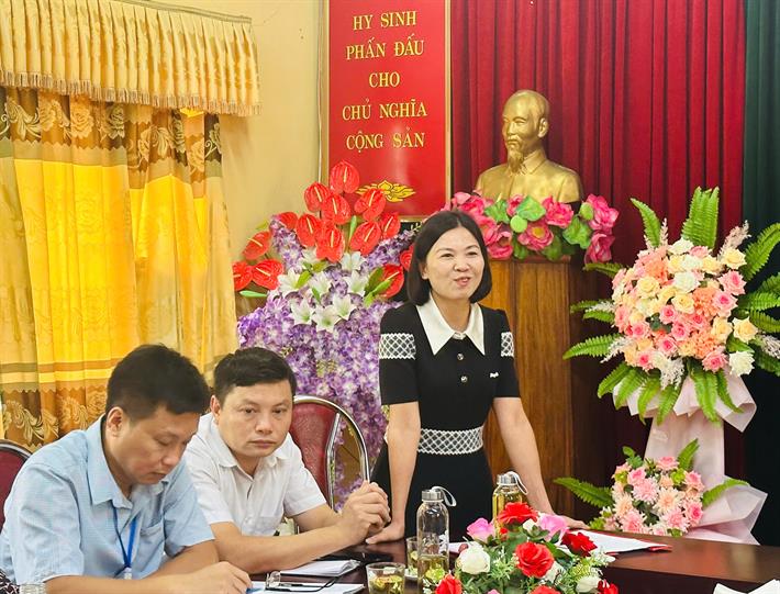 Cô giáo Đoàn Thị Hải Triều - Phó Hiệu trưởng Trường THCS Kỳ Lâm, Sơn Dương, Tuyên Quang trao đổi về những kết quả bước đầu rất ý nghĩa của chương trình với học sinh nữ của trường