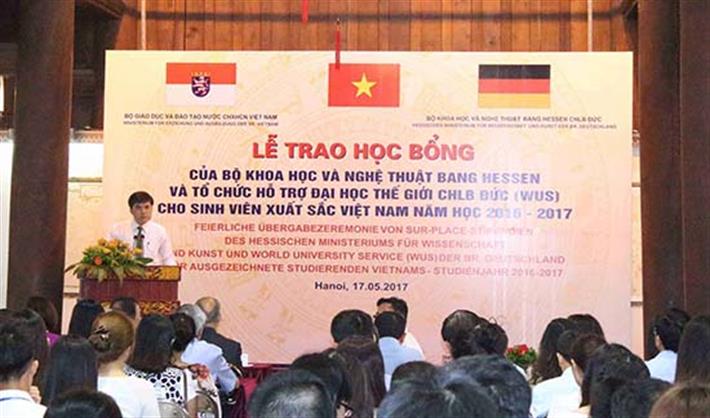 Chiều ngày 17/05/2017, tại Văn Miếu Quốc tử Giám – Hà Nội, Bộ Giáo dục và Đào tạo, Bộ Khoa học và Nghệ thuật bang Hessen, Tổ chức Hỗ trợ Đại học Thế giới CHLB Đức (WUS) đã trao 78 suất học bổng Hessen năm học 2016 - 2017 cho sinh viên các trường Đại học, Cao đẳng khu vực phía Bắc.