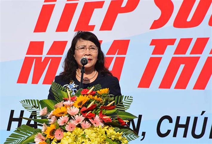 Thứ trưởng Nguyễn Thị Nghĩa phát biểu tại Lễ ra quân chương trình “Tiếp sức mùa thi” năm 2017