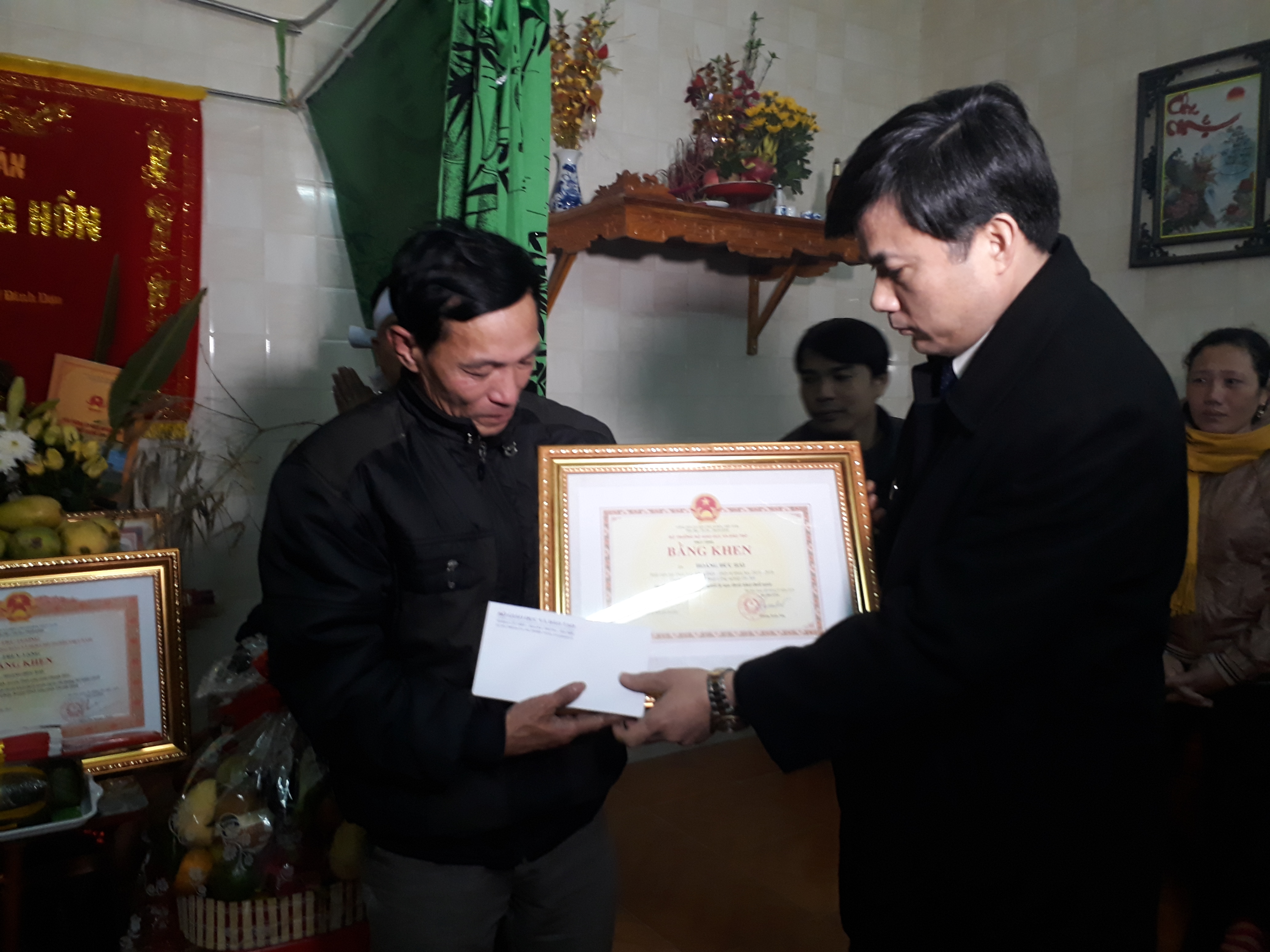 Thừa ủy quyền của Bộ trưởng Bộ GD&ĐT, ông Bùi Văn Linh đã trao Bằng khen và số kinh phí 5 triệu đồng cho người thân của em Hoàng Đức Hải. Chia sẻ với người thân gia đình em Hoàng Đức Hải, ông Bùi Văn Linh cho biết: “Khi biết tin em Hải đã không sợ nguy hiểm, sẵn sàng lao xuống dòng nước cứu được 3 mẹ con cô giáo Lê Thị Loan (GV THCS xã Hải Châu, Tĩnh Gia) khỏi bị đuối nước, sau đó bị kiệt sức và hy sinh; GS. Phùng Xuân Nhạ-Uỷ viên BCH TƯ Đảng-Bộ trưởng Bộ GD&ĐT, lãnh đạo Bộ và các thầy cô ở Bộ GD&ĐT đã rất khâm phục, xúc động trước hành động dũng cảm cứu người của em Hải.