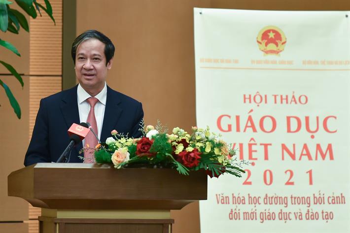 “Văn hóa học đường là những gì đang diễn ra trong trường học, đang được sử dụng để vận hành nhà trường - khi đạt tới chuẩn và các giá trị thì đó là văn hóa học đường. Trong nhà trường hoạt động quan trọng nhất là dạy và học, quan hệ quan trọng nhất là quan hệ giữa thầy và trò, các giá trị có thể khái quát nhất chính là chân - thiện - mỹ”. Đây là phát biểu của Bộ trưởng Nguyễn Kim Sơn tại Hội thảo Giáo dục Việt Nam 2021 với chủ đề “Văn hóa học đường trong bối cảnh đổi mới giáo dục và đào tạo”.