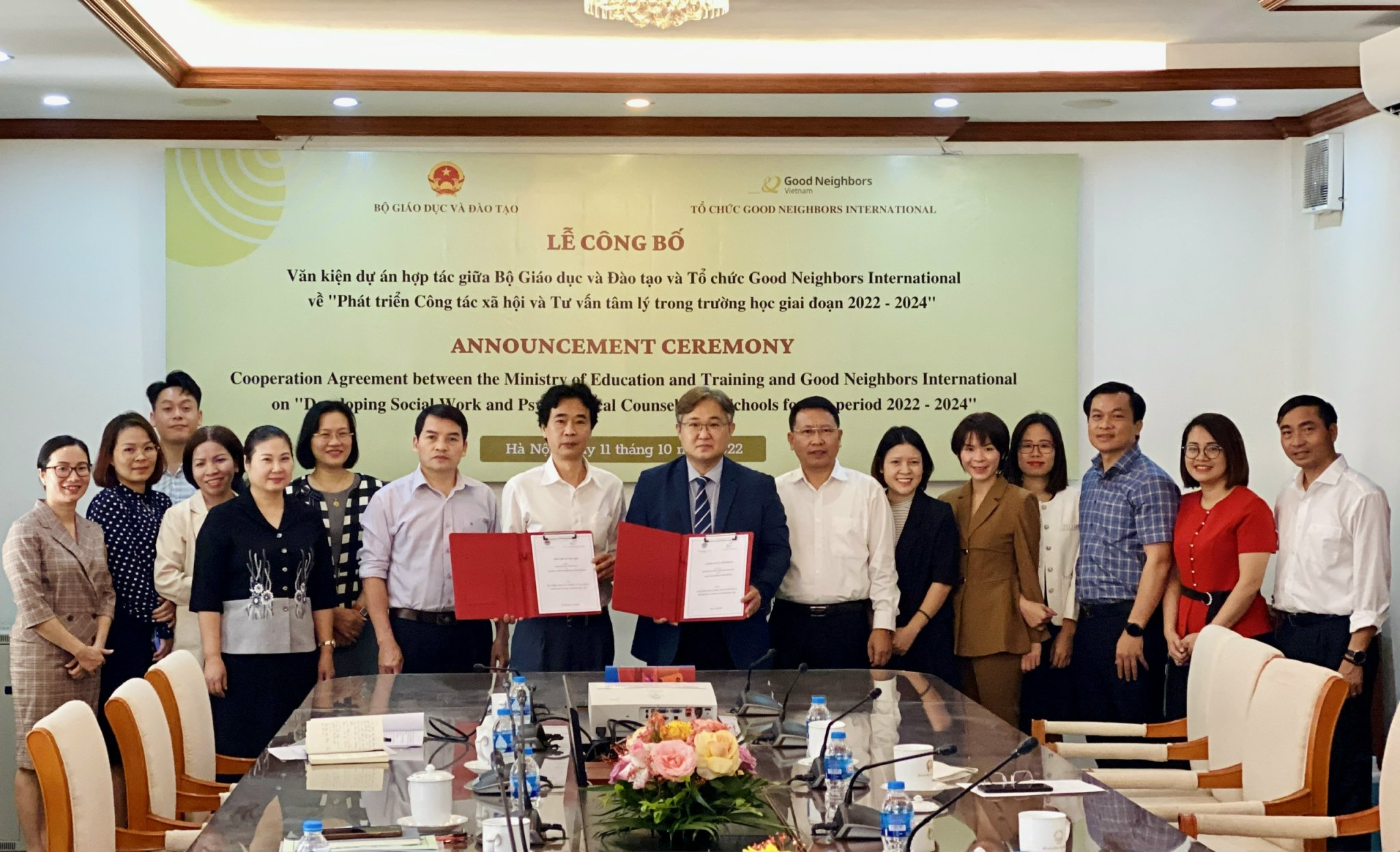 Ngày 11/10, Bộ Giáo dục và Đào tạo (GDĐT) và Tổ chức Good Neighbors International (GNI) công bố văn kiện dự án hợp tác về “Phát triển Công tác xã hội và Tư vấn tâm lý trong trường học giai đoạn 2022-2024”.