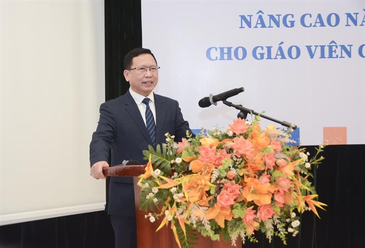 Vụ trưởng Vụ Giáo dục Chính trị và Công tác học sinh, sinh viên Trần Văn Đạt phát biểu tại tập huấn