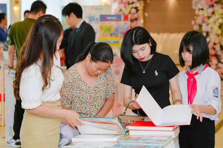 Giáo viên, học sinh tham quan triển lãm trong khuôn khổ lễ tổng kết, trao giải