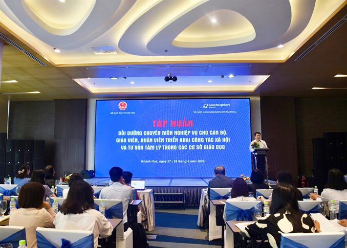 Xác định vai trò của hoạt động tập huấn trong việc bồi dưỡng, nâng cao lực năng lực, kiến thức, kỹ năng, thực hành tình huống, cập nhật sự thay đổi của thực tiễn triển khai công tác tư vấn tâm lý, công tác xã hội trường học, Bộ GDĐT phối hợp với Tổ chức GNI xây dựng Tài liệu hướng dẫn về chuyên môn, nghiệp vụ cho cán bộ, giáo viên, nhân viên triển khai công tác xã hội và tư vấn tâm lý trong các cơ sở giáo dục.