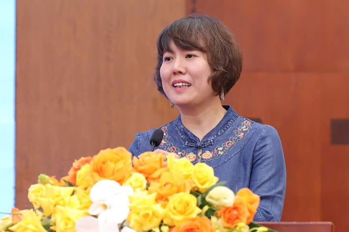 Trưởng Ban Quản lý Đề án Ngoại ngữ Quốc gia Nguyễn Thị Mai Hữu báo cáo tại hội nghị
