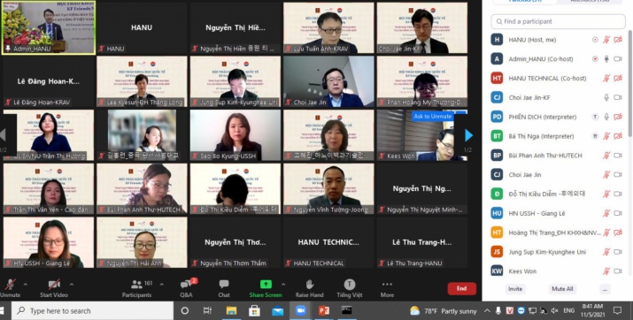 Hội thảo do Trường ĐH Hà Nội (HANU) phối hợp với Quỹ giao lưu quốc tế Hàn Việt (KF) và Hội Nghiên cứu khoa học về Hàn Quốc tại Việt Nam (KRAV) tổ chức theo hình thức trực tuyến.