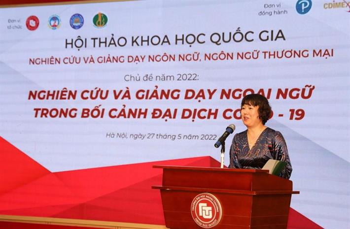 Phát biểu khai mạc hội thảo, PGS.TS. Đào Ngọc Tiến - Phó Hiệu trưởng Trường ĐH Ngoại thương khẳng định, đại dịch Covid 19 đã tạo ra những thách thức không nhỏ cho các hoạt động dạy và học ngoại ngữ với đặc thù vốn có là rất cần những tương tác thực tế. Việc chuyển sang dạy và học trực tuyến đã ảnh hưởng trực tiếp đến vai trò của người dạy, người học, phương pháp dạy và học, ngữ liệu và đặc biệt là phương tiện công nghệ thông tin được áp dụng trong mỗi bài học. Ông nhấn mạnh, để có cái nhìn toàn diện hơn về thực trạng cũng như những tác động của đại dịch Covid 19 đến các hoạt động dạy và học ngoại ngữ, hội thảo này là diễn đàn cho các giảng viên, các nhà nghiên cứu, các chuyên gia, học viên, sinh viên, nghiên cứu sinh trao đổi học thuật về nghiên cứu trong lĩnh vực ngôn ngữ, các phương pháp giảng dạy ngoại ngữ, đặc biệt là ngoại ngữ thương mại. Hội thảo cũng là nơi đề xuất chính sách, giải pháp nhằm đổi mới và cải tiến các phương pháp giảng dạy, học tập ngoại ngữ và ngoại ngữ thương mại trong các trường đại học, đặc biệt trong bối cảnh đại dịch Covid 19.
