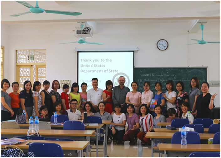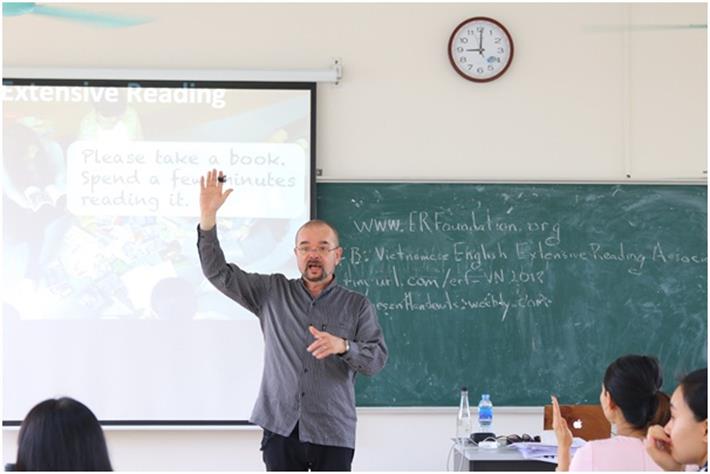 Nhằm nâng cao, phát triển kỹ năng chuyên môn cho học viên cao học và nghiên cứu sinh chuyên ngành tiếng Anh, ngày 31/5/2018, Trường Đại học Ngoại ngữ – Đại học Quốc gia Hà Nội phối hợp với Đại sứ quán Hoa Kỳ đã tổ chức hoạt động bồi dưỡng và chia sẻ kiến thức do GS. Marc Helgesen là diễn giả.
