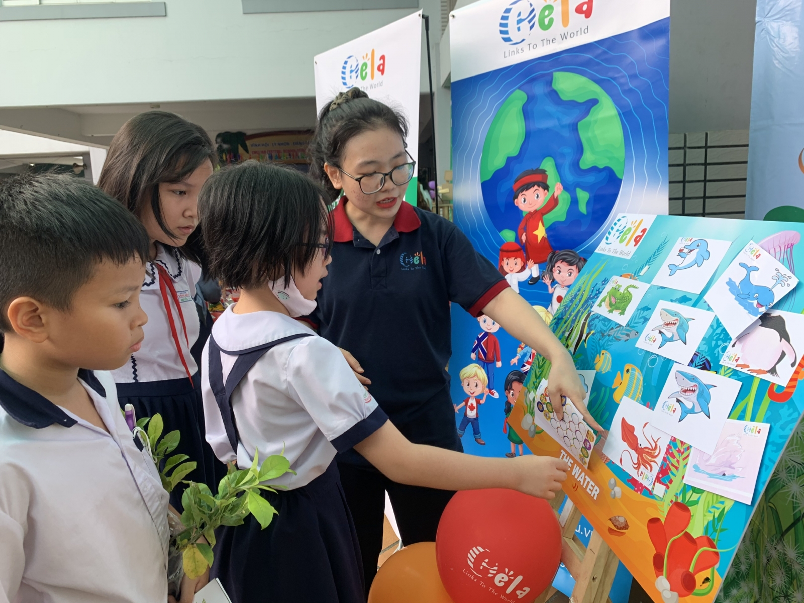 Học sinh tiểu học hòa mình ngày hội "xanh" tiếng Anh