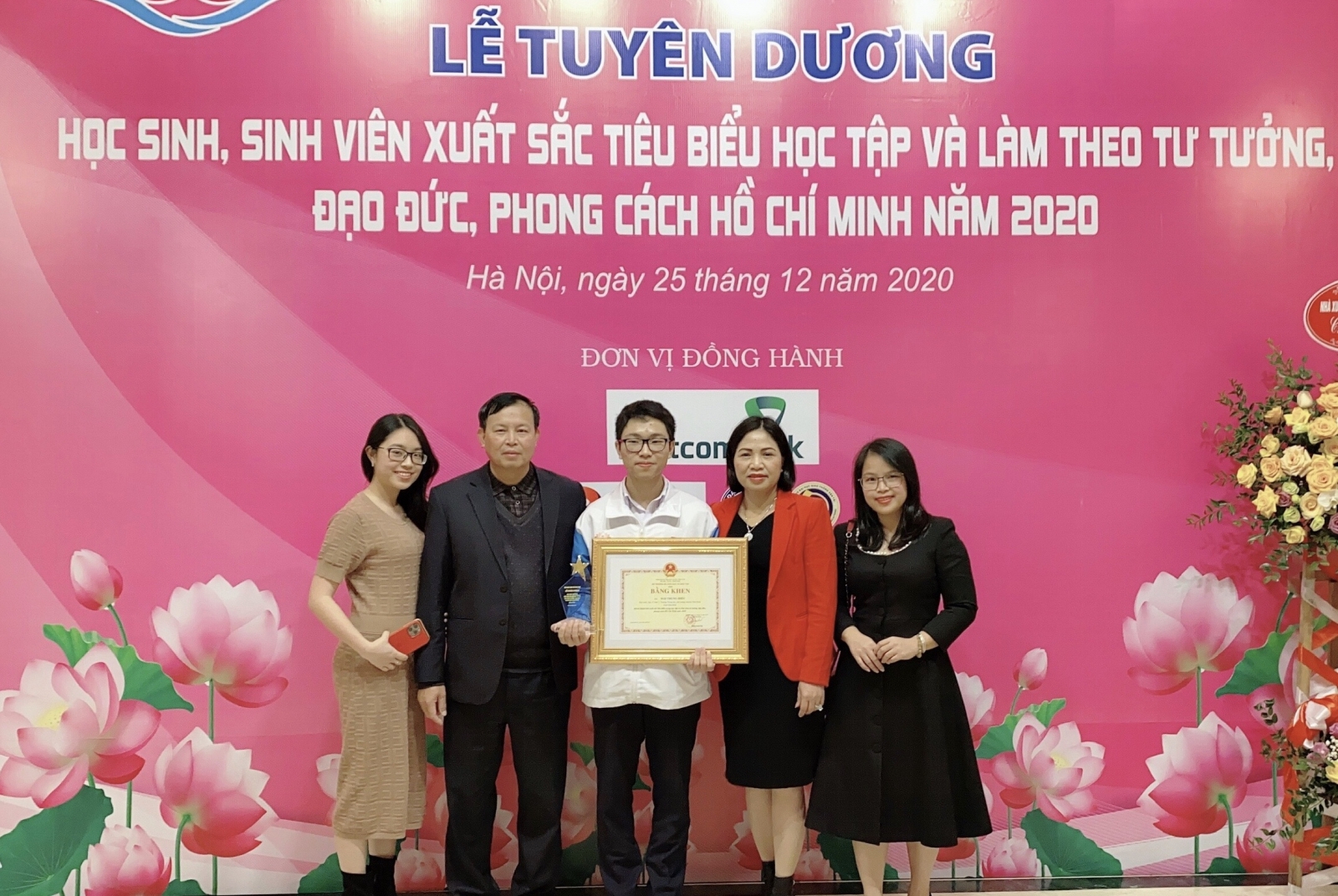 Mai Trung Hiếu cùng gia đình trong Lễ tuyên dương học sinh giỏi