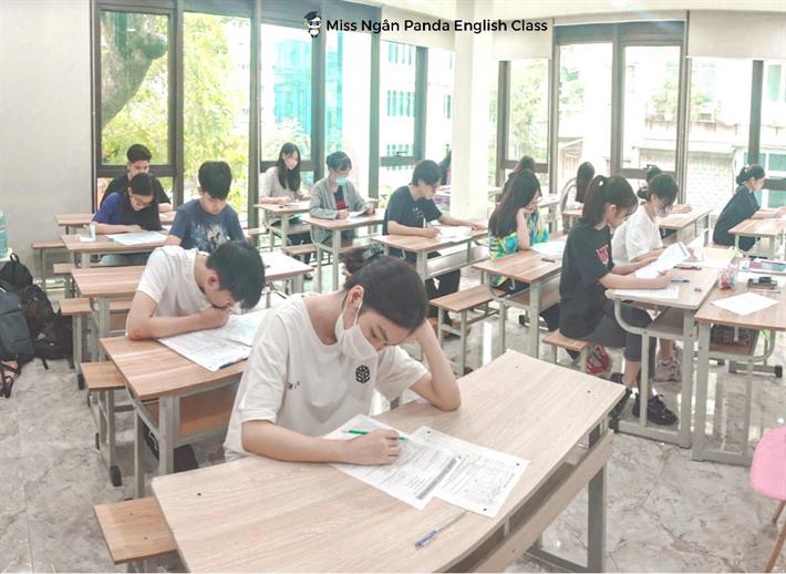 Học sinh lớp luyện thi tiếng Anh vào 10 của cô Kim Ngân. Ảnh: NVCC