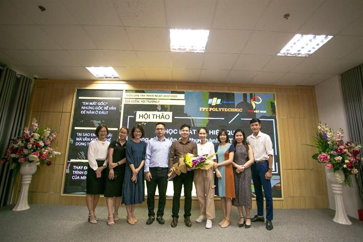 Thầy Nguyễn Hữu Phúc nhận hoa từ Ban chủ nhiệm khoa tiếng Anh – CĐ FPT Polytechnic