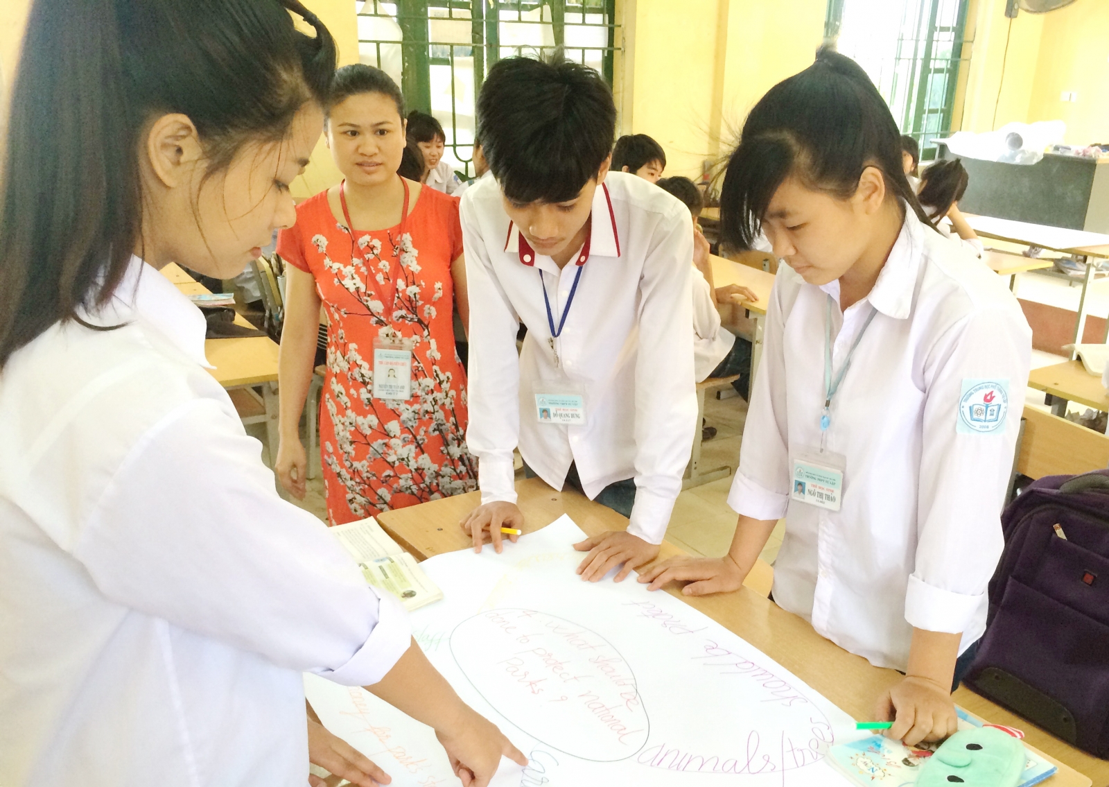 Với kỹ năng nói, cô thường sử dụng bản đồ tư duy, cho học sinh hoạt động cặp, nhóm…. Với kỹ năng đọc, cô giúp các em biết một số mẹo làm bài đọc hiểu. Với từng loại câu hỏi, nên sử dụng cách nào để dễ đạt điểm cao.
