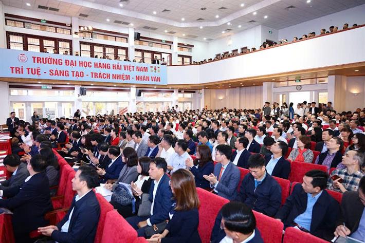 PGS.TS Phạm Xuân Dương - Hiệu trưởng Trường Đại học Hàng hải Việt Nam chia sẻ tại hội nghị