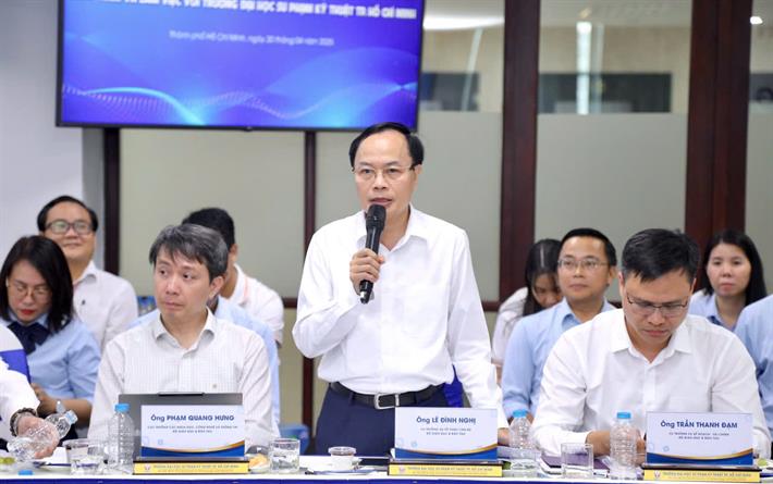 PGS.TS Lê Hiếu Giang, Hiệu trưởng Trường ĐHSPKT TP.HCM, phát biểu tại buổi làm việc