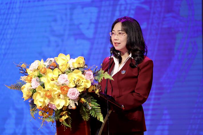 TS Lê Mai Lan, Phó Chủ tịch Tập đoàn Vingroup, Chủ tịch Hội đồng trường đại học VinUniversity, phát biểu tại hội nghị