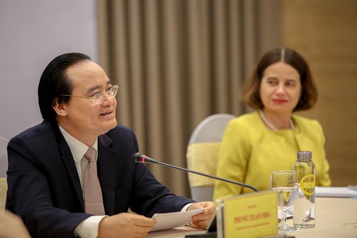 Bộ trưởng cho biết, thời gian tới, bệnh dịch Covid-19 vẫn còn nhiều tiềm ẩn khó lường, hình thức dạy và học trực tuyến sẽ tiếp tục được áp dụng rộng rãi trong các cơ sở giáo dục Việt Nam. Bộ GDĐT Việt Nam đã và đang ban hành các chính sách cần thiết để khuyến khích dạy và học trực tuyến, trực tuyến kết hợp với trực tiếp, đồng thời đẩy mạnh chuyển đổi số ngành giáo dục.
