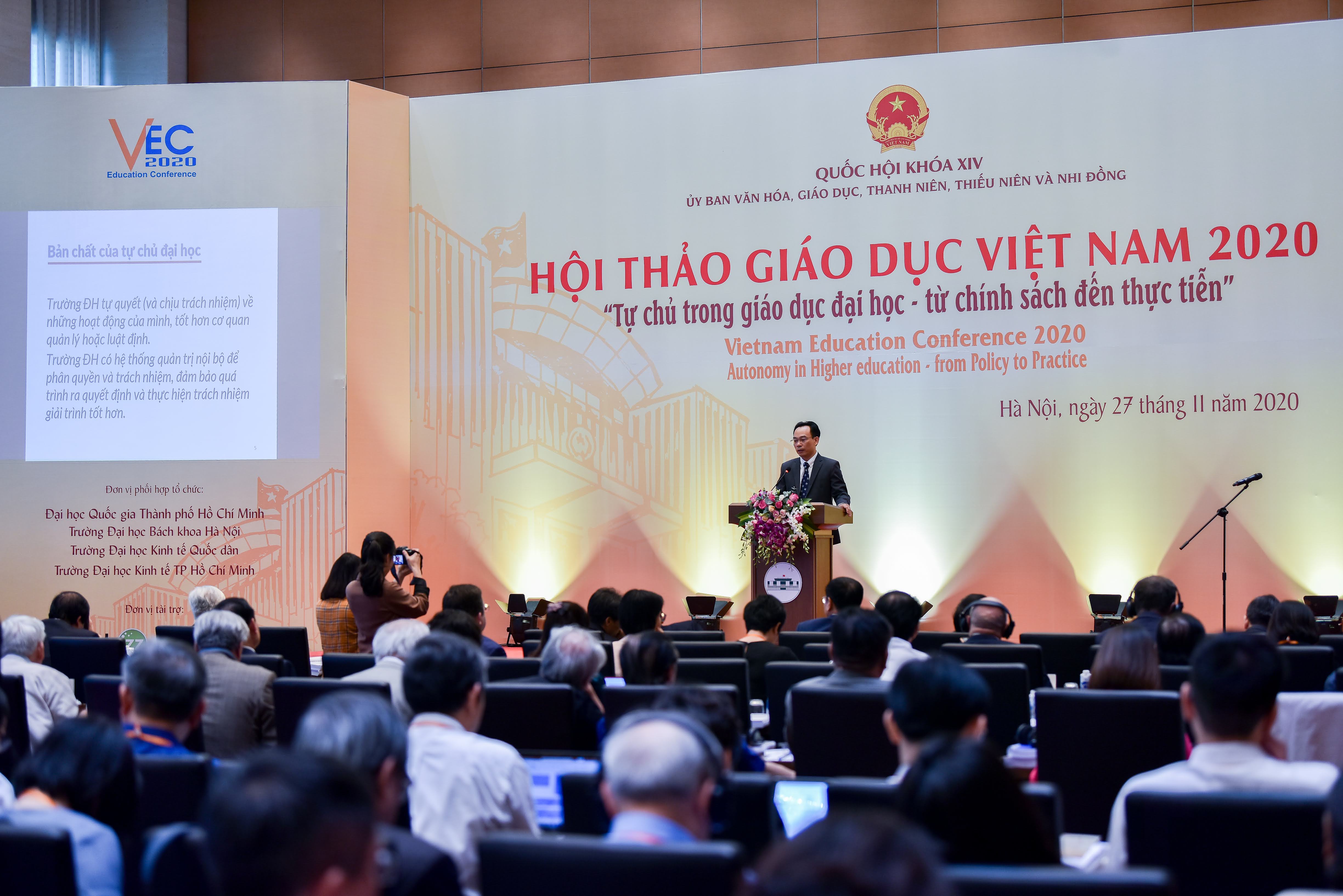 Chỉ đạo hội thảo, Phó Chủ tịch Thường trực Quốc hội Tòng Thị Phóng nhấn mạnh, hơn 30 năm đổi mới, GDĐH Việt Nam đã đạt được những thành tựu quan trọng. Hệ thống văn bản quy phạm pháp luật về GDĐH từng bước hoàn thiện là hành lang pháp lý cho GDĐH phát triển, phù hợp với chủ trương, định hướng đổi mới của Đảng. Đặc biệt, có nhiều chính sách mới đã được hoạch định và thực thi như việc đẩy mạnh tự chủ cho các cơ sở GDĐH.