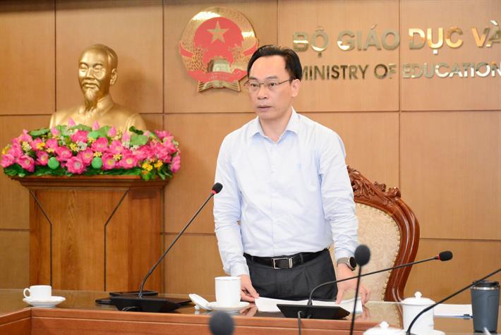 Thứ trưởng Bộ GDĐT Hoàng Minh Sơn phát biểu kết luận cuộc họp