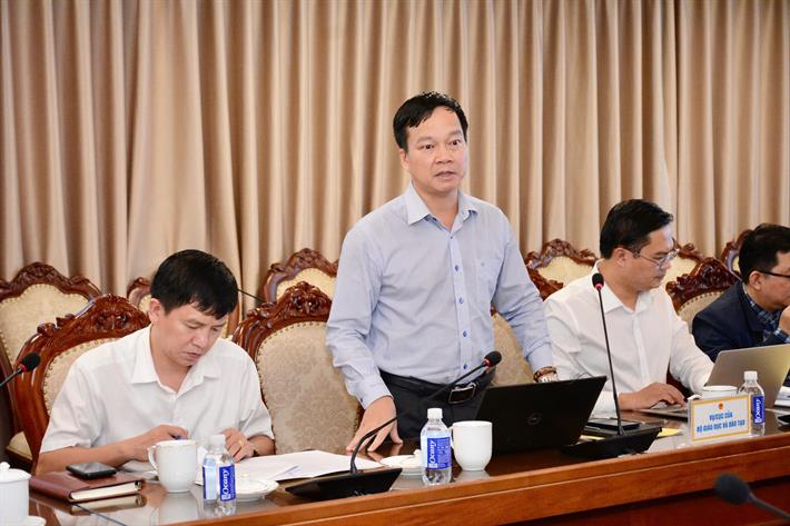 Phó Vụ trưởng Vụ Giáo dục đại học Nguyễn Anh Dũng báo cáo tại phiên họp
