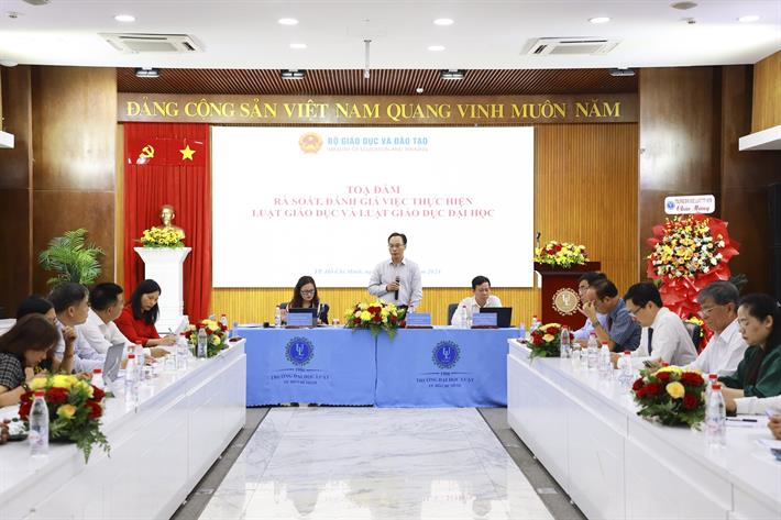 Phát biểu mở đầu toạ đàm, Thứ trưởng Hoàng Minh Sơn cho biết, việc tổ chức khảo sát, tọa đàm nhằm đánh giá việc thực hiện Luật Giáo dục và Luật Giáo dục đại học với mục đích rà soát, đánh giá khách quan, toàn diện những kết quả đạt được, kịp thời phát hiện những khó khăn, vướng mắc, bất cập, mâu thuẫn, chồng chéo trong quá trình thực hiện Luật Giáo dục, Luật Giáo dục đại học và các chính sách pháp luật liên quan để đề xuất các nội dung cần sửa đổi, bổ sung, thay thế.