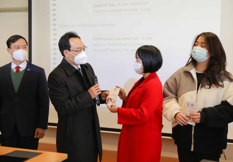 Tại Trường Đại học Kinh tế Quốc dân, Thứ trưởng Hoàng Minh Sơn và đoàn công tác đã đến kiểm tra một số lớp học trực tiếp. Nhân những ngày đầu năm mới, Thứ trưởng đã lì xì cho giảng viên và sinh viên. Dành thời gian nói chuyện, trao đổi với sinh viên, Thứ trưởng nhắn nhủ, việc trở lại trường để học trực tiếp là cần thiết. Vì thế, các em khắc phục khó khăn để có kết quả cao trong học tập. Cùng với đó, đề cao ý thức: Vừa học, vừa phòng chống tốt dịch bệnh.