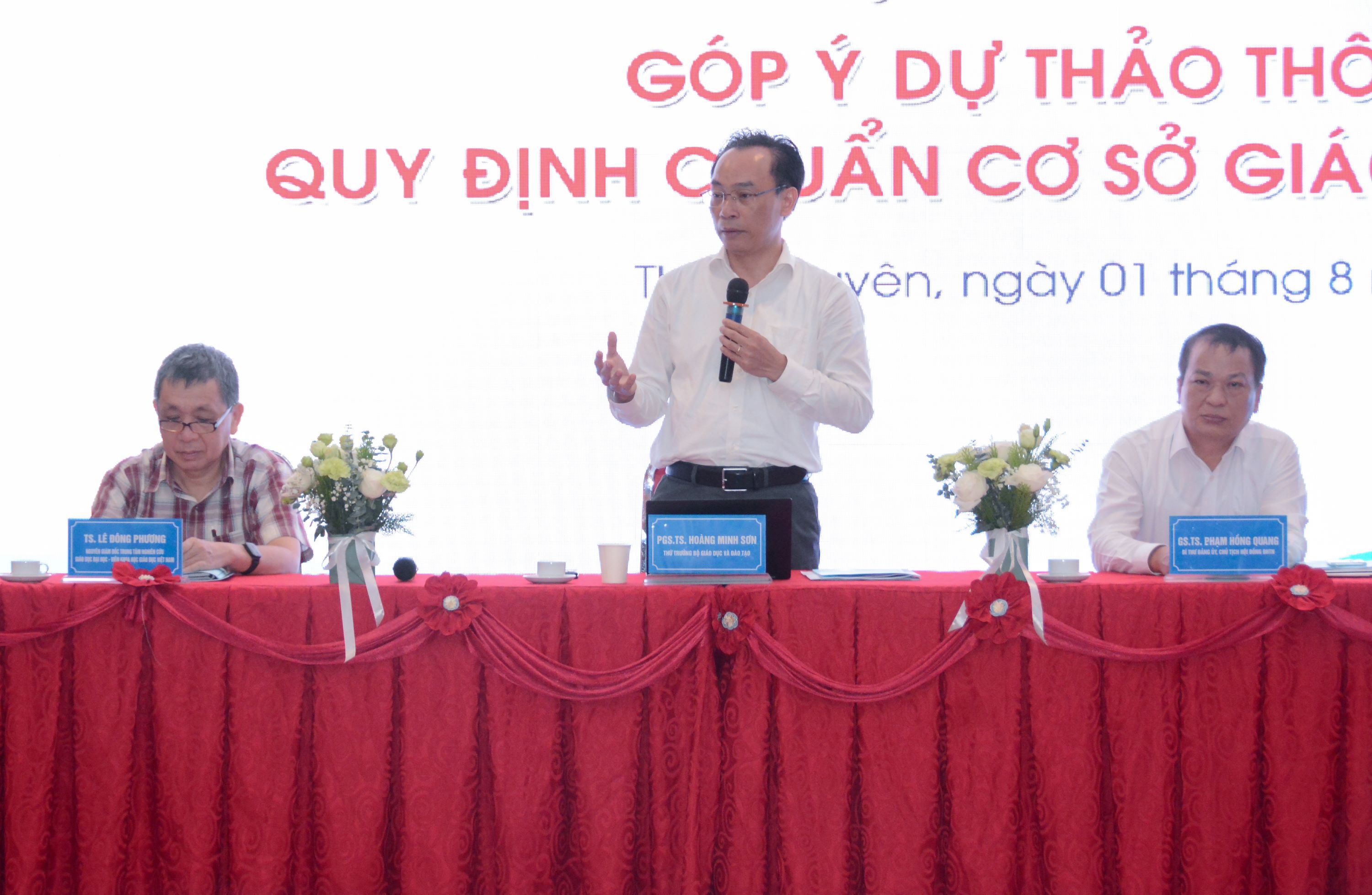 Từ góc độ ban soạn thảo, GS.TS Phạm Hồng Quang, Chủ tịch Hội đồng Đại học Thái Nguyên cho biết, ban soạn thảo sẽ tiếp thu các ý kiến; đồng thời bày tỏ quan điểm: Dự thảo Thông tư chuẩn cơ sở giáo dục đại học cho thấy sự kỳ vọng, khát vọng, phấn đấu đến những gì chất lượng, vì con em chúng ta. Vấn đề quy hoạch đại học mặc dù khó nhưng là vì đất nước, vì lâu dài.