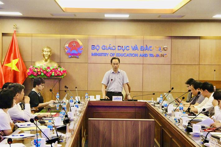 Thứ trưởng Bộ GDĐT Hoàng Minh Sơn phát biểu tại phiên họp